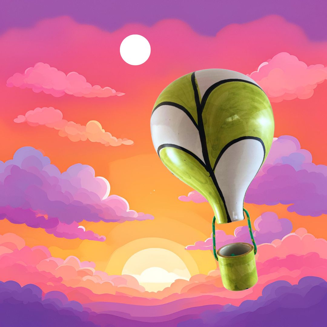 MONGOLFIERA REALIZZATA A MANO IN CERAMICA DIPINTA